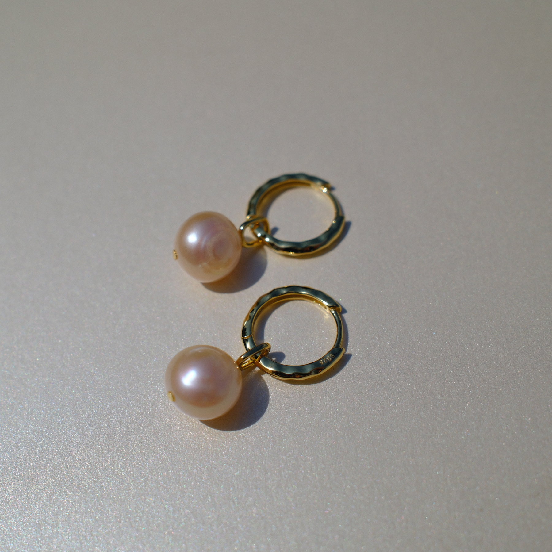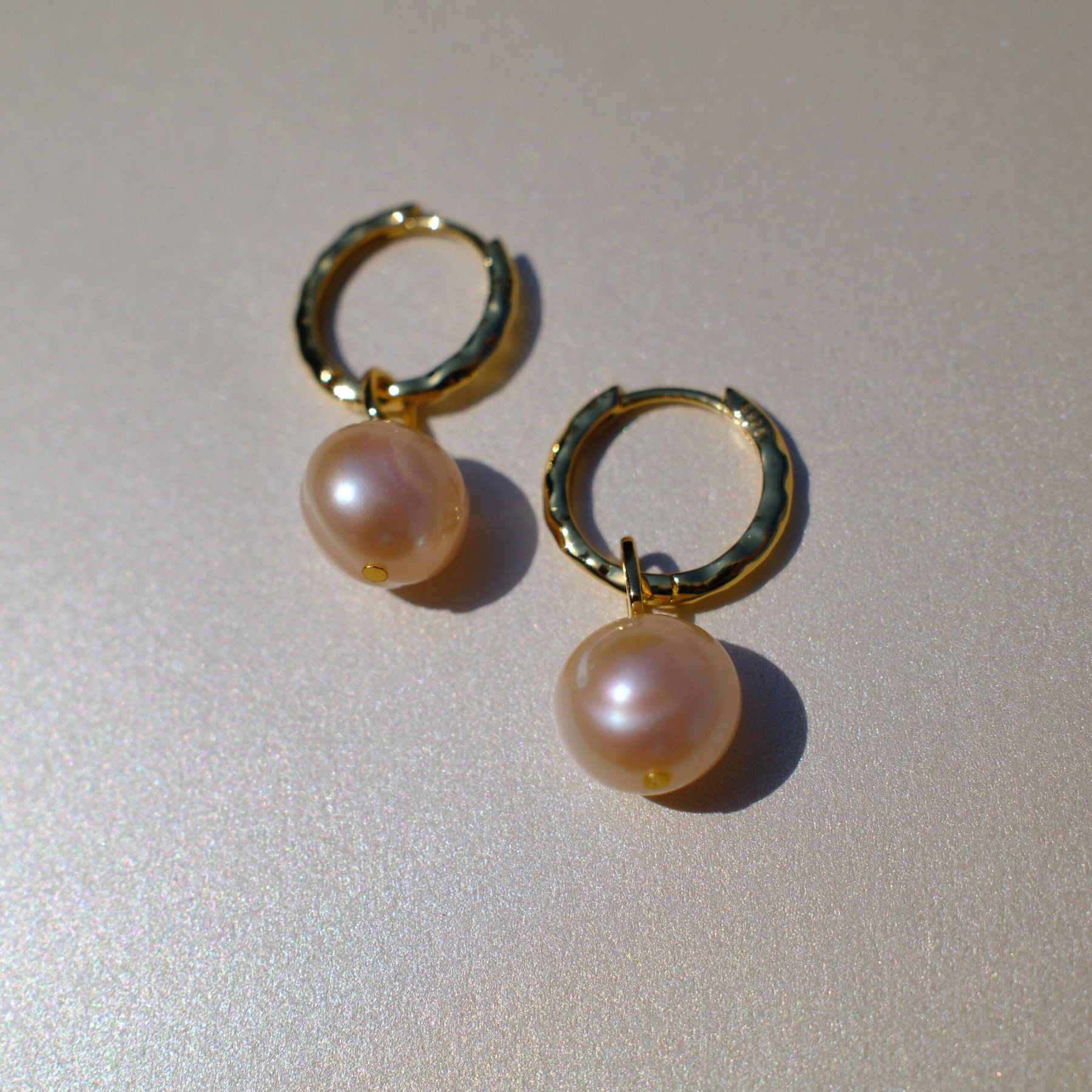 De cada candonga cuelga un dije de perla natural de agua dulce en suave tono rosa, símbolo de elegancia y feminidad. La combinación del dorado cálido con la sutileza de la perla crea una pieza equilibrada, luminosa y atemporal.
