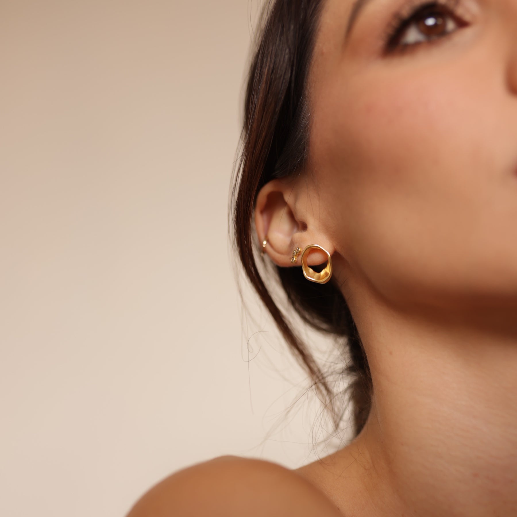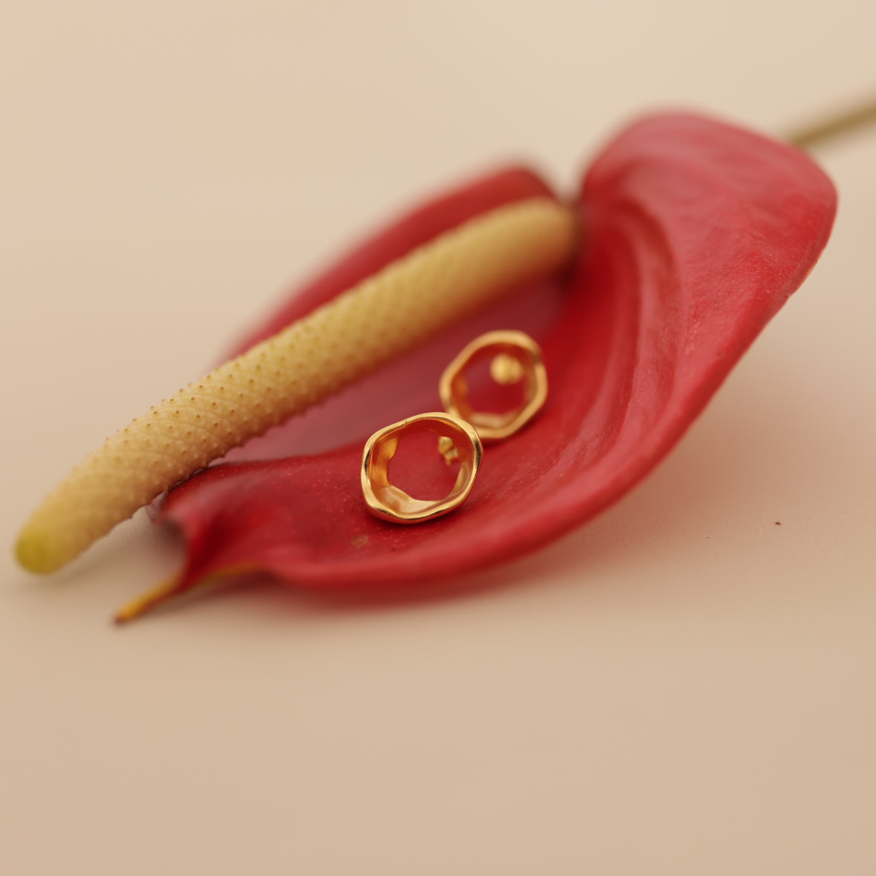 Inspirada en las ondas sutiles del mar que se ven cuando vemos el horizonte. Su forma circular hace referencia al infinito y los ciclos. Estos aros también hacen alusión a los cúmulos de estrellas que se encuentran en el espacio. Estos grupos de estrellas se forman cuando son estrellas del mismo origen y están ligadas por una fuerza gravitatoria. Los cúmulos de estrellas se mantienen juntos por millones de años y tienen formas circulares y muy orgánicas. Al estudiarlas nos encantó la idea de la unión delas estrellas y cómo nosotros en la vida nos conectamos con personas donde sabemos y sentimos que la conexión va más allá del espacio y el tiempo.
