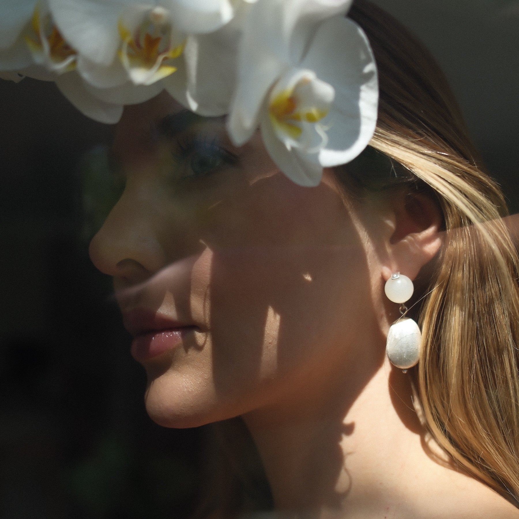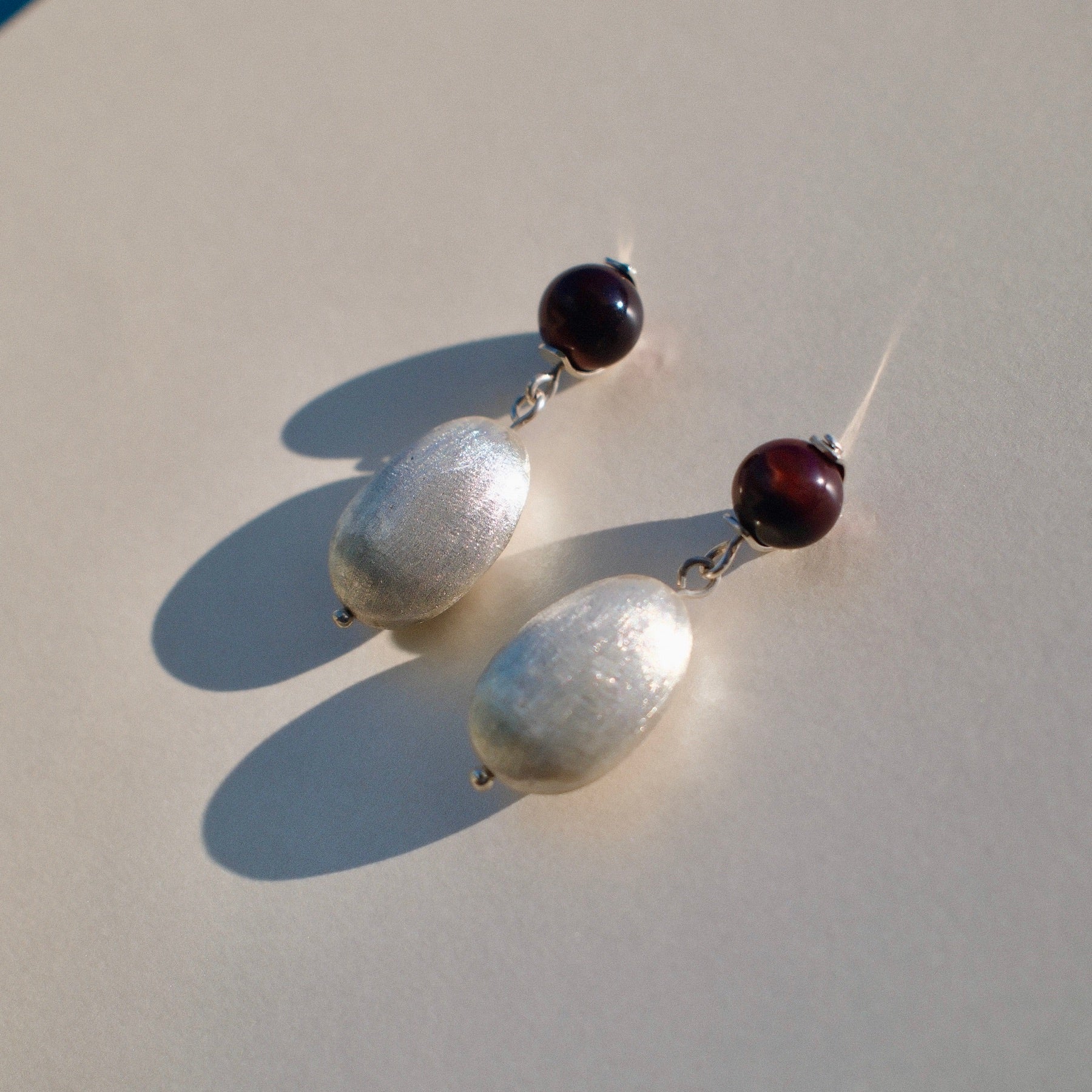 De ellas cuelgan unos Ávalos en plata .925, cuidadosamente elaborados mediante un proceso artesanal que les aporta textura, luz y un acabado único. El contraste entre la piedra y la plata crea una pieza con aire clásico y moderno a la vez, capaz de realzar cualquier look con elegancia natural.