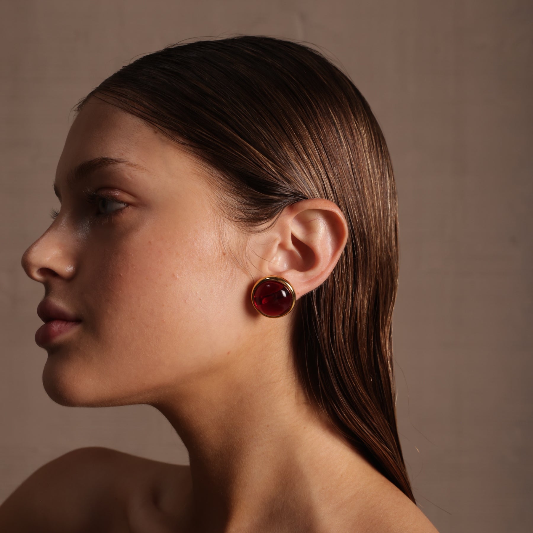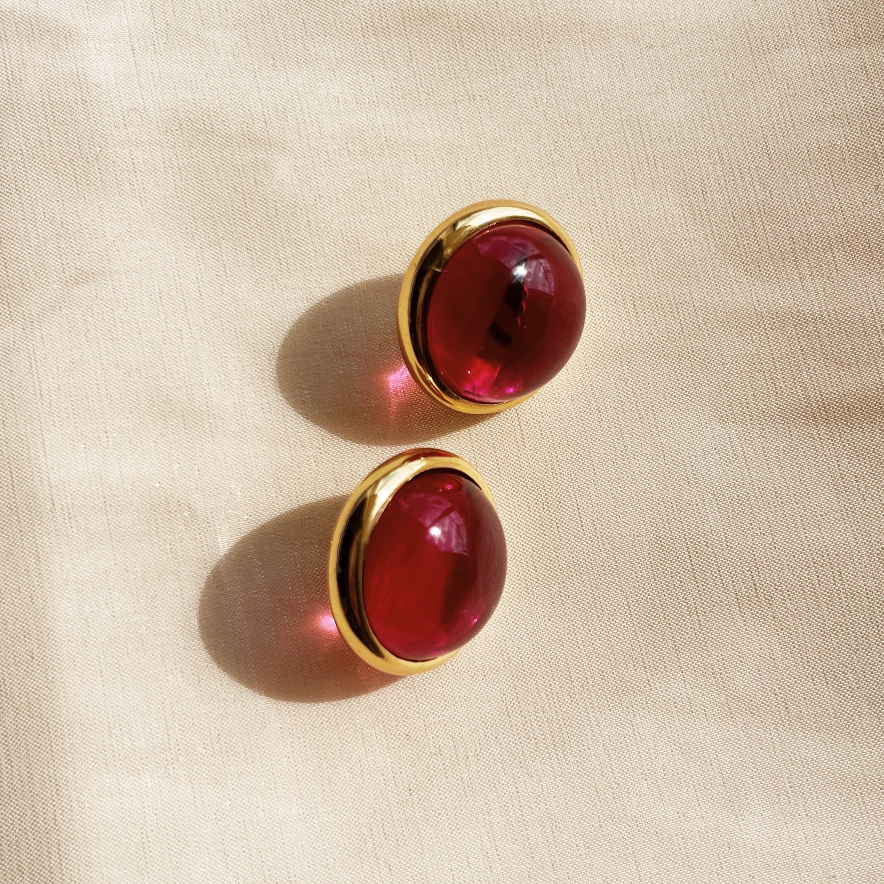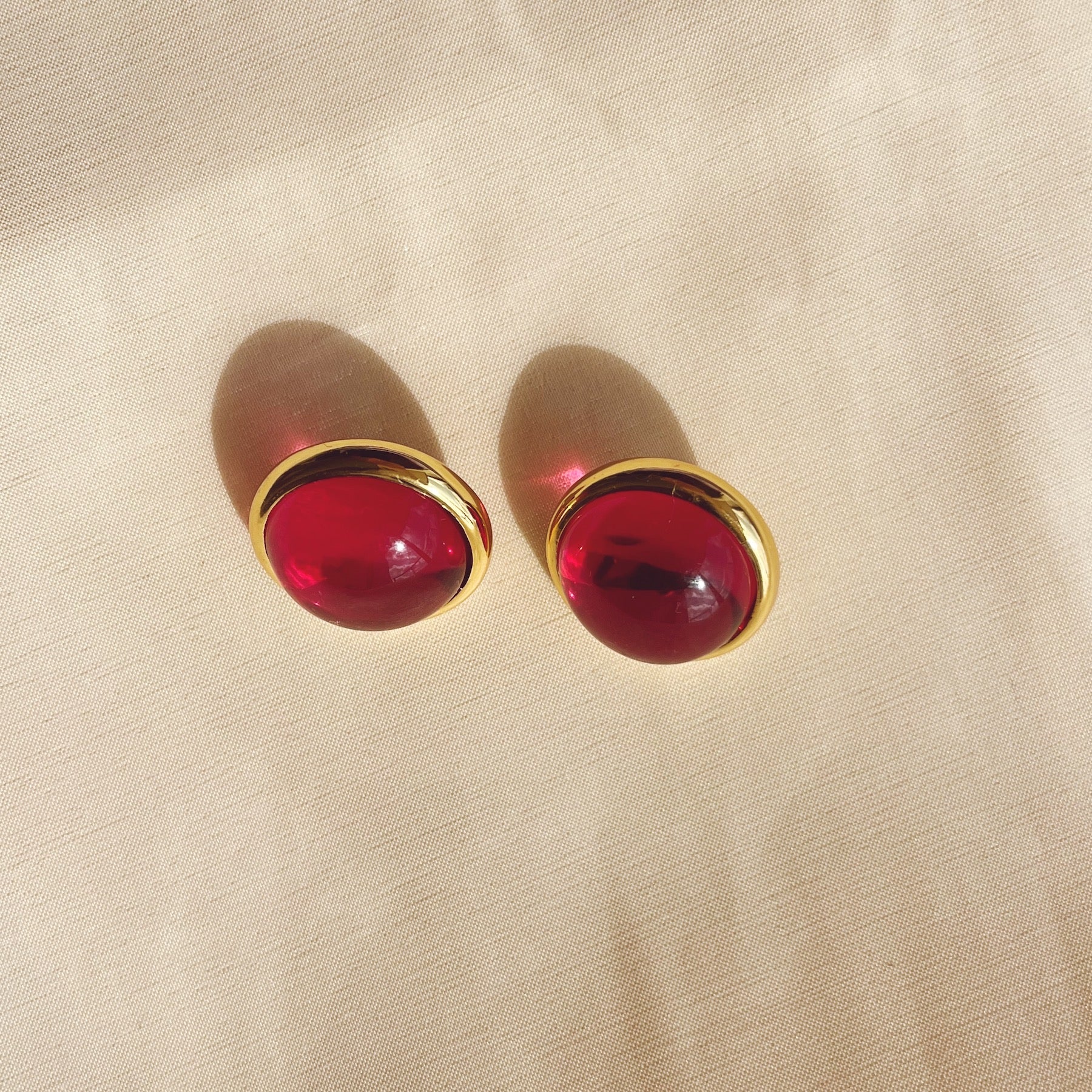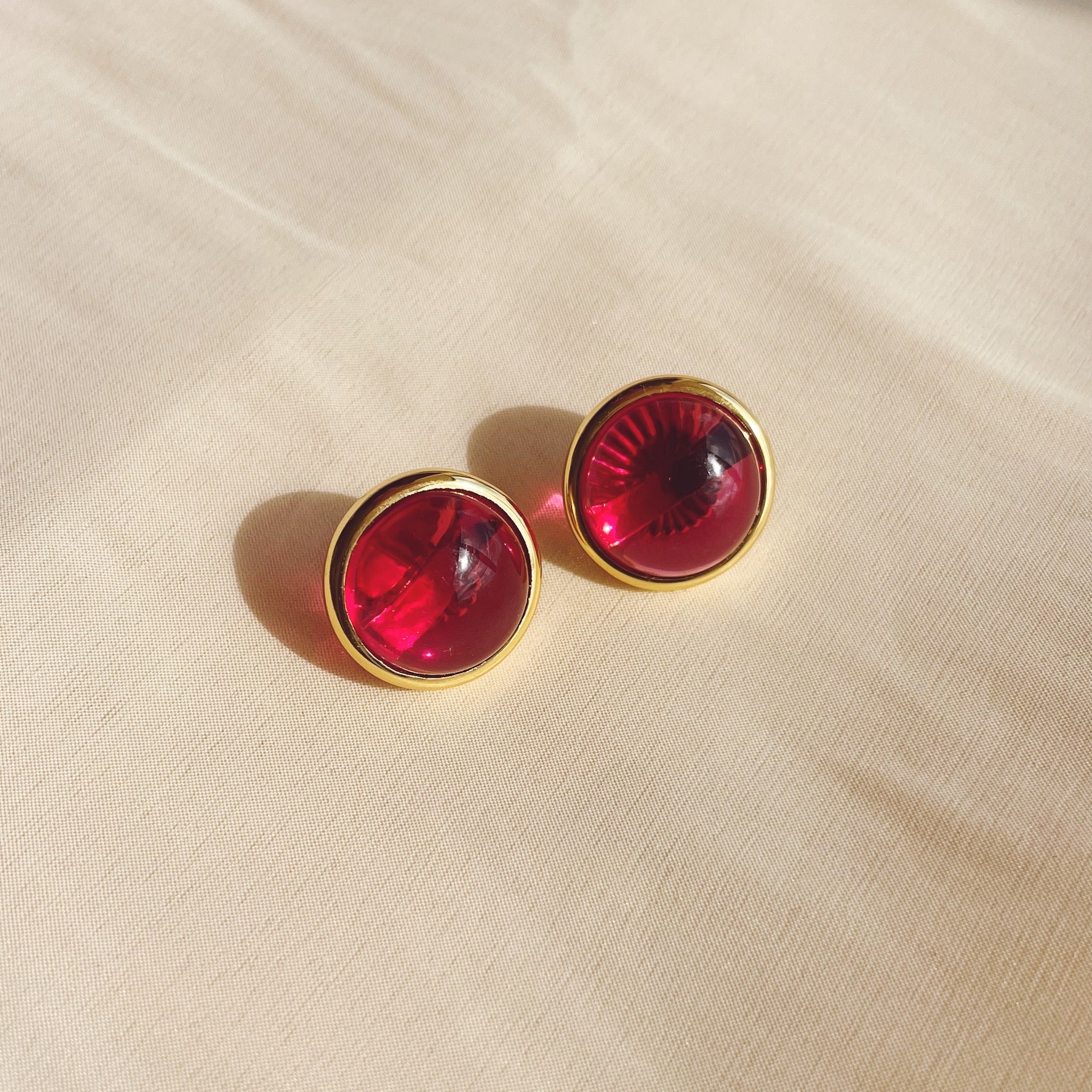 Estos topitos redondos de 2 cm con borde grueso dorado aportan un diseño elegante y contemporáneo. Su centro rojo cereza translúcido juega con la luz, creando un efecto brillante y sutil que resalta en cualquier ambiente. Ligeros, cómodos y perfectos para cualquier ocasión, estos pendientes son la opción ideal para un look sofisticado y versátil.
