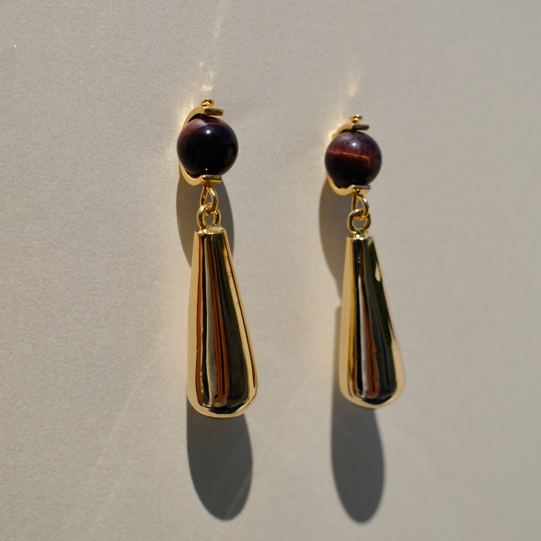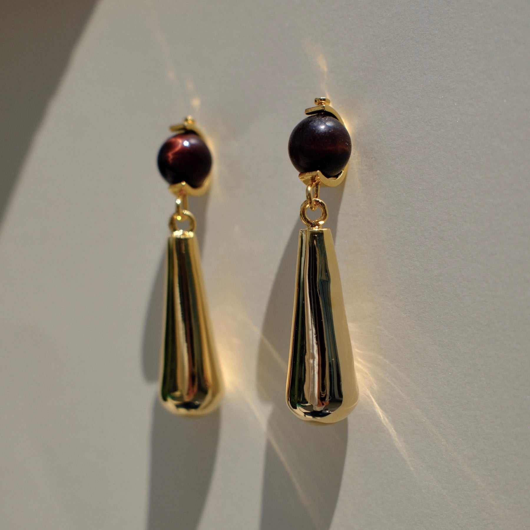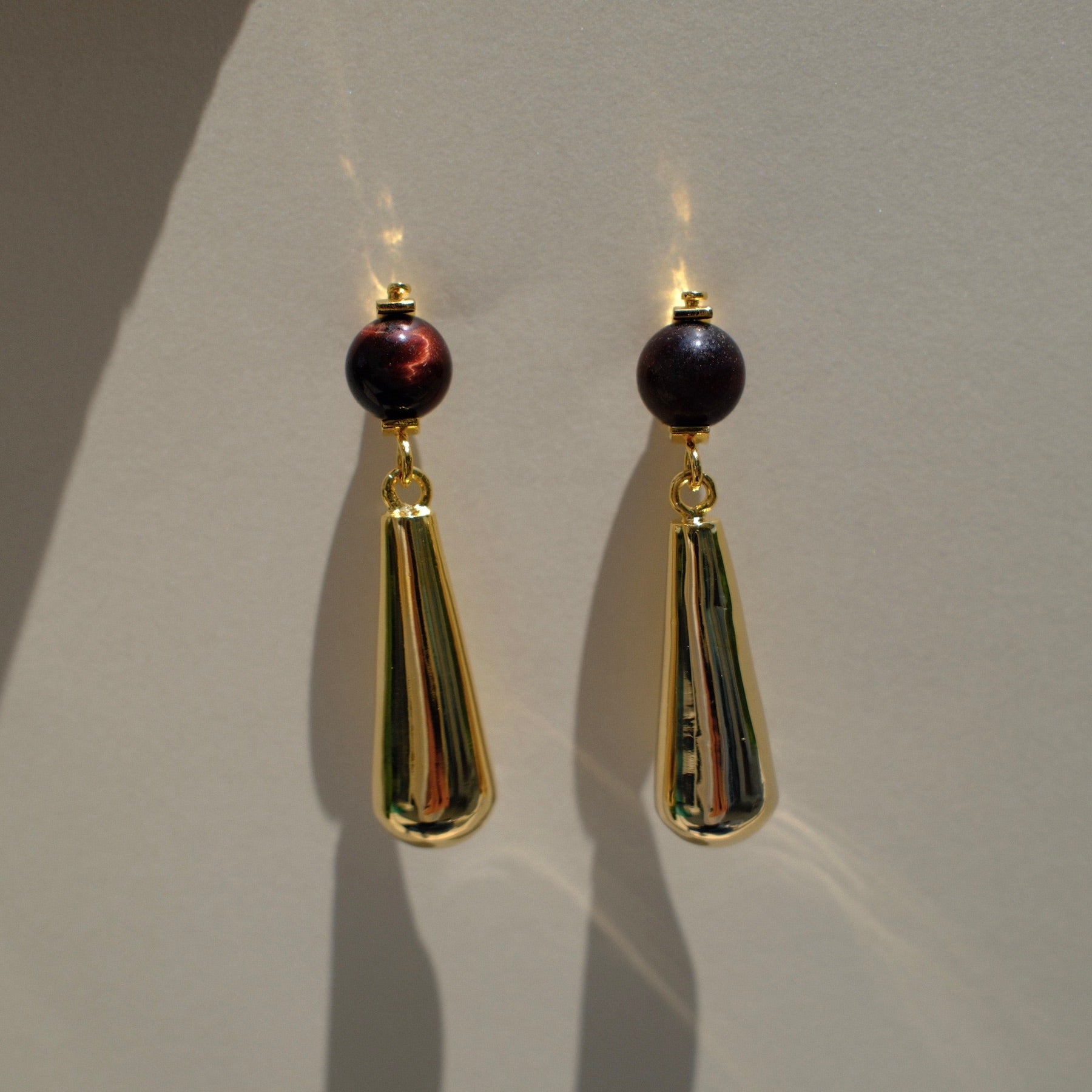 Elegantes y llenos de movimiento, los aretes Vera combinan una piedra natural en la parte superior —disponibles en ágata verde, ojo de tigre, perla o aguamarina— con una delicada gota metálica dorada que cuelga suavemente, reflejando la luz a cada paso.