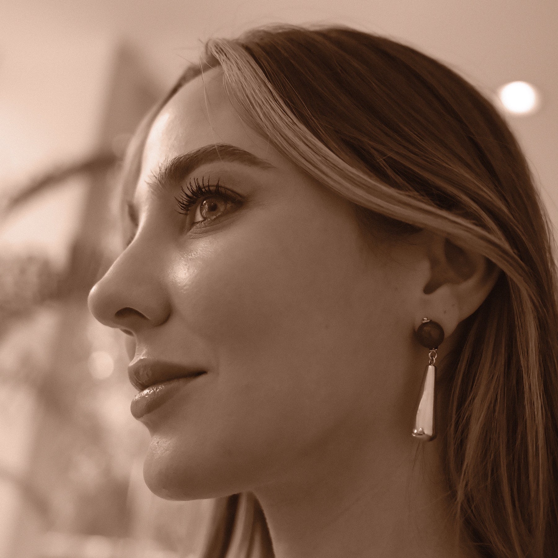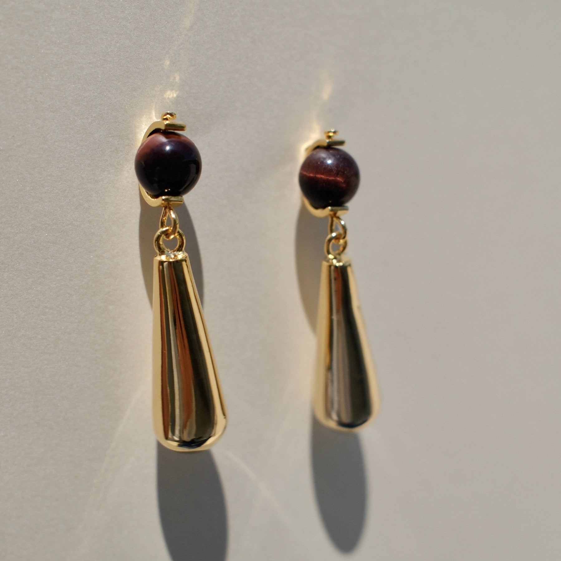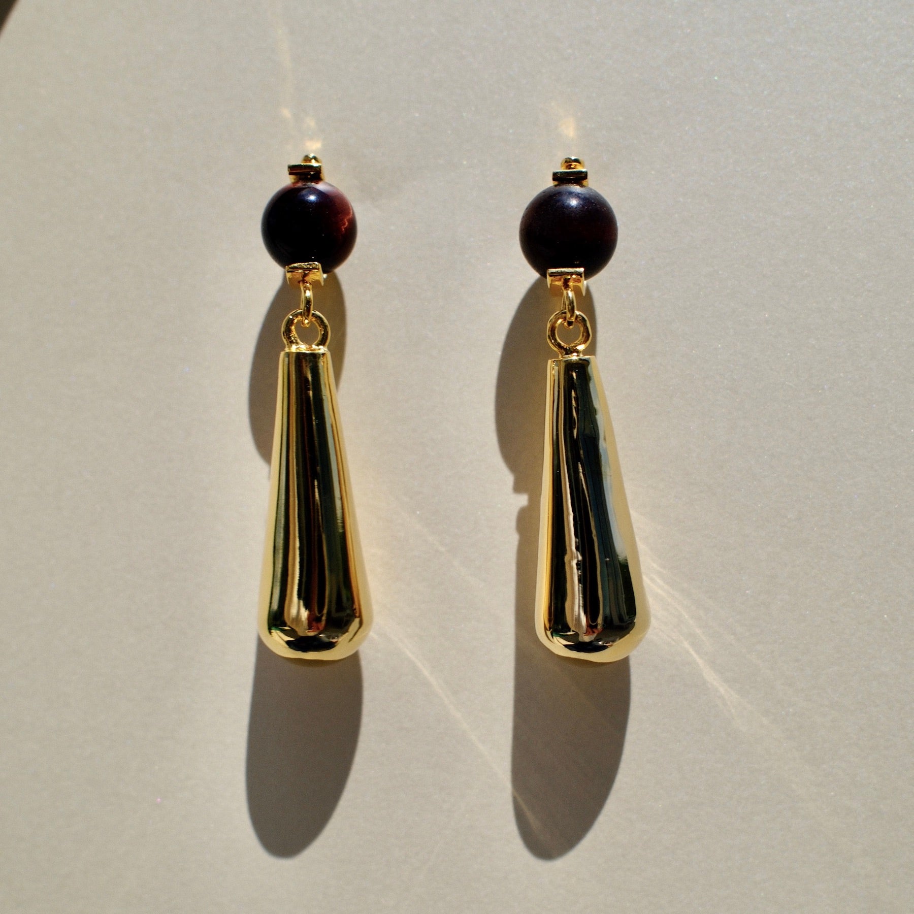 Elegantes y llenos de movimiento, los aretes Vera combinan una piedra natural en la parte superior —disponibles en ágata verde, ojo de tigre, perla o aguamarina— con una delicada gota metálica dorada que cuelga suavemente, reflejando la luz a cada paso.